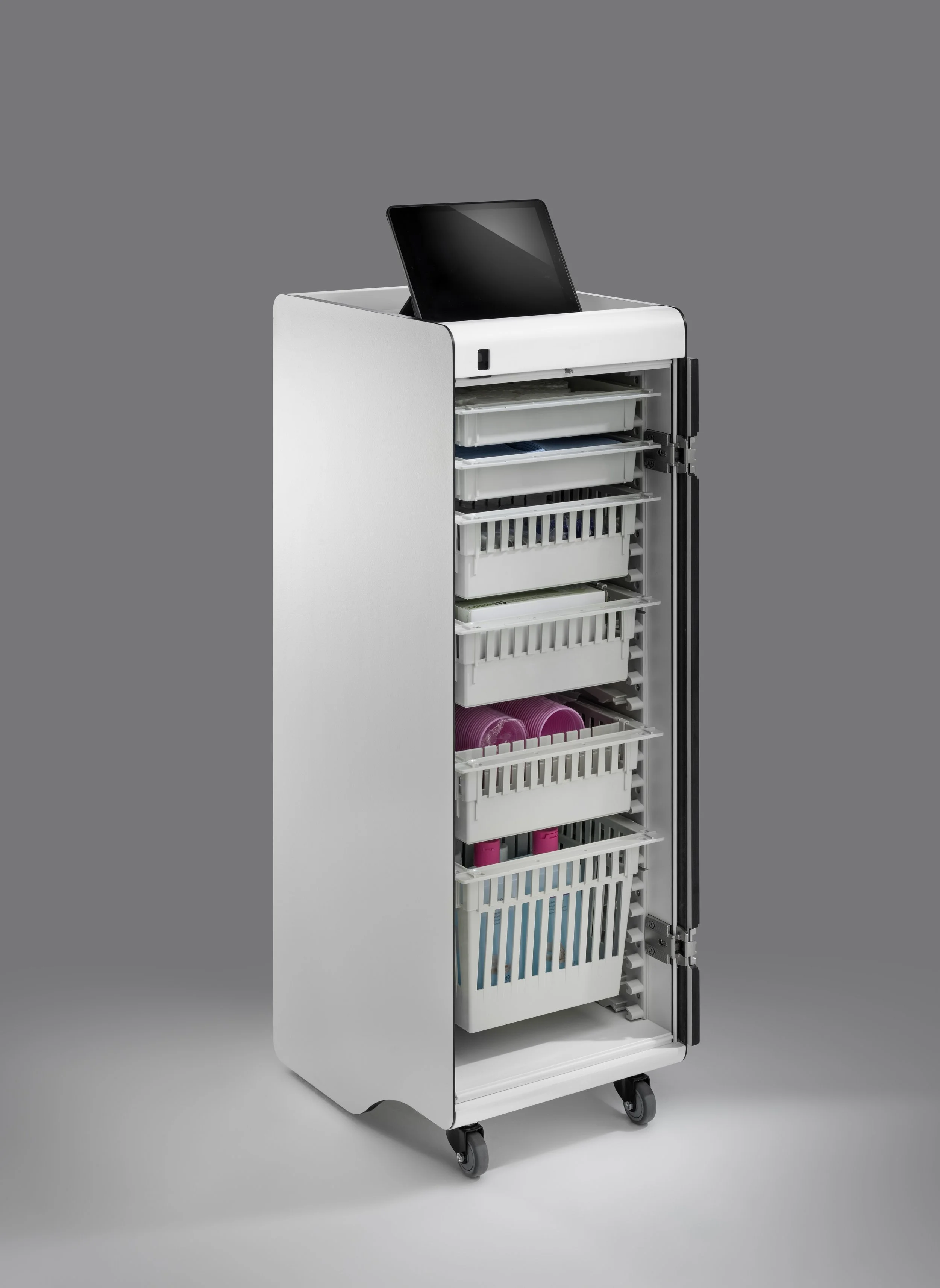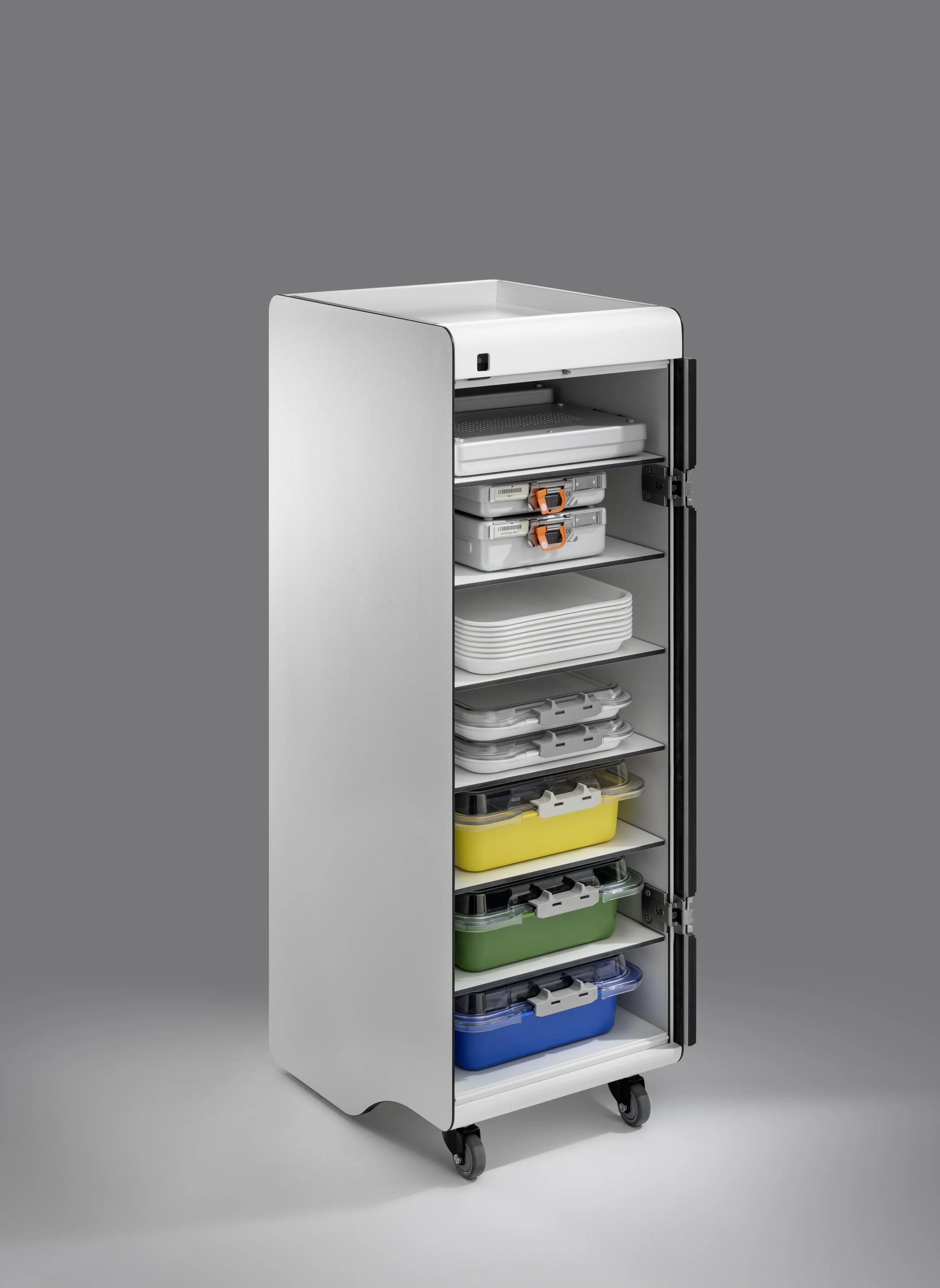 Das COBRA Basismodell ist ein vielseitiger Schreibtisch, der in allen Bereichen einer Praxis eingesetzt werden kann – vom Empfang über den Wartebereich bis hin zu Behandlungsräumen und Laboren. Am Empfang bietet er dank seiner Rollen Mobilität, sodass das Personal den Schreibtisch bei Bedarf leicht drehen und verschieben kann. Neben der Funktion als Empfangstisch kann er auch als Ausstellungsfläche für Produkte, als mobile Check-in-Station bei hohem Andrang oder als Getränke- und Kaffeestation für Patienten im Wartezimmer genutzt werden.